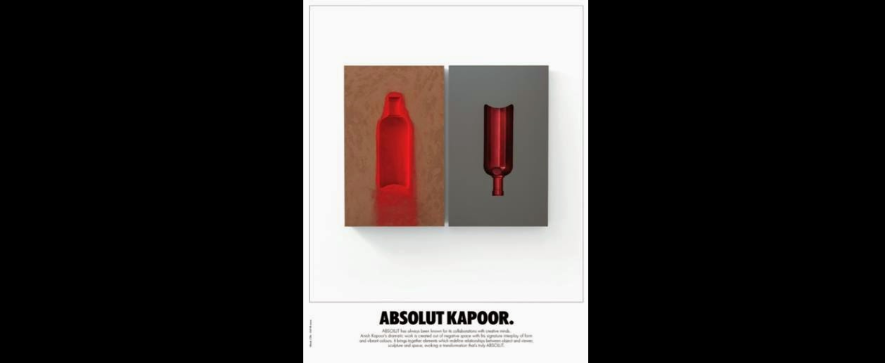 The ABSOLUT KAPOOR piece comes across as the negative of a photograph through the use of a vibrant color as its distinctive signature, and aims to bring together elements that redefine and transform the relationship between the object, the viewer, sculpture and space. Anish Kapoor, for Absolut, wants to reinterpret the iconic bottle while evoking a sublime experience and generating amazement.